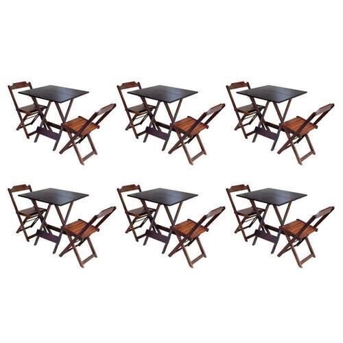 Kit 6 Conjuntos De Mesa Dobravel Com 2 Cadeiras De Madeira 70x70 Ideal Para Bar E Restaurante - Imbu - Cor: Marrom