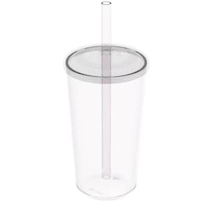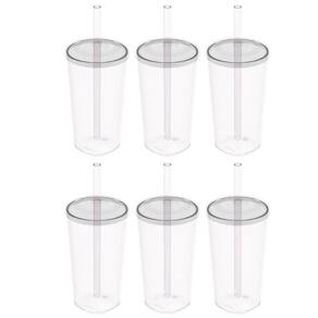 Kit 6 Copos com Tampa e Canudo 500ml Crippa Transparente Plástico Água Suco Bebidas