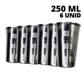 Kit 6 copos de inox resistente para cerveja agua suco 250ml Bem vindo a nossa loja A lualki store tem os melhores produtos para seu uso. Se atentamos para total satisfação do cliente. Todos nossos produtos tem garantia e acompanha nota filscal.