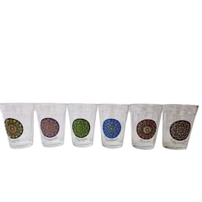 Traga mais estilo e energia positiva para o seu lar com o Kit 6 Copos Vidro Americano Mandala – a escolha perfeita para quem valoriza elegância e harmonia!