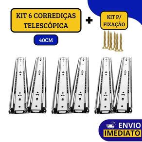 Kit 6 Corrediças Gaveta Telescópica Light 40cm Com Parafusos Kit 6 Corrediças Gaveta Trilho Telescópica Light Com Parafusos 40cm