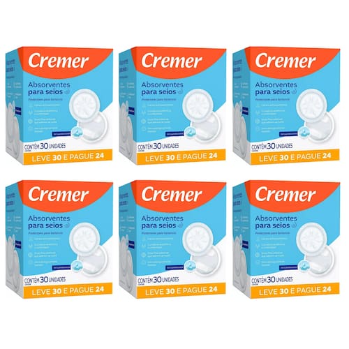 Kit com 06 caixas de absorvente para seios Cremer c/30