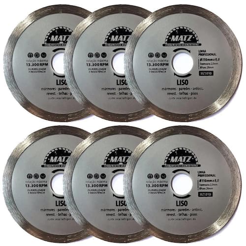 Kit 6 Disco De Corte Diamantado Liso 8Mm 110Mm X 20Mm Matz