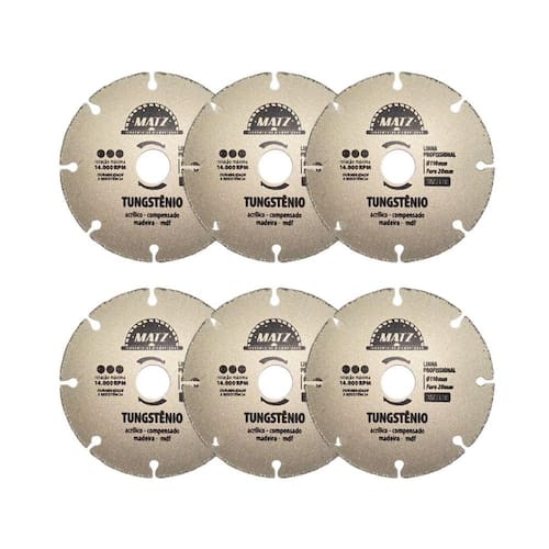 Informações técnicas: Perfil do corte: Segmentado Tipo de corte: A seco Dimensões: - Diâmetro externo: 110mm 4.3/8'' - Diâmetro do furo: 20mm - Espessura: 1,2mm Rotação máxima por minuto RPM : 14.000 - 80m/s Para corte de: Madeira, MDF, compensado e acrílico Proporciona qualidade e produtividade na operação Produto de altíssima qualidade com alta performance