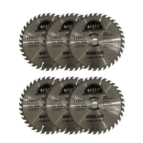 Kit 6 Disco Serra Wídea Madeira 36 Dentes 180Mm X 20Mm Matz