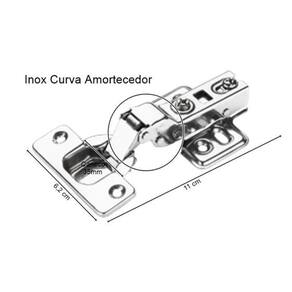 Kit 6 Dobradiças Curva com Pistão Inox Renna – Amortecimento Suave e Alta Durabilidade (Kit com 6 unidades)