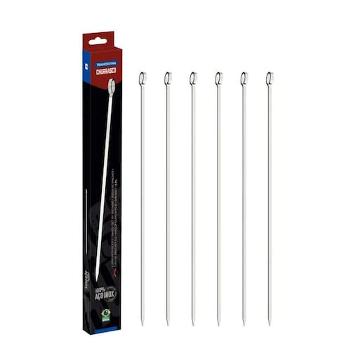 Conjunto de Espetinhos Tramontina em Aço Inox 30 cm - 6 Peças Esteja sempre pronto para um delicioso churrasco com o conjunto de espetinhos Tramontina da linha Churrasco. Composto por 6 espetos de 30 cm, este kit foi desenvolvido para aqueles que valorizam qualidade e praticidade ao assar carnes. Fabricados em aço inox, eles oferecem durabilidade e resistência ao calor, além de serem fáceis de limpar. Características do Produto: Material: Aço Inox, que oferece resistência e evita deformações. Comprimento: 30 cm, ideal para diversos tipos de carnes e legumes. Durabilidade: A espessura do aço e a estampagem especial garantem que os espetos mantenham a forma mesmo em altas temperaturas. Praticidade: Podem ser levados à máquina de lavar louças, facilitando a limpeza no dia a dia. Recomendações de Uso: Primeira Utilização: Lave bem as peças e seque-as antes de usar. Cuidados: Mantenha os espetos fora do alcance das crianças e evite o contato com objetos cortantes ou perfurantes. Armazenamento: Para maior durabilidade, seque bem os espetos antes de guardá-los. Com este conjunto de espetinhos, você terá mais facilidade e qualidade na hora de preparar churrascos e confraternizações com a família e amigos.