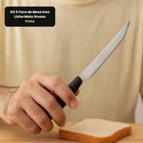 Contém: 01 Kit 6 Faca de Mesa Inox Linha Mato Grosso - Preta