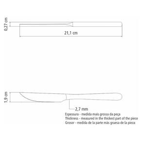 Sua lâmina é submetida ao processo térmico, que a torna resistente à corrosão e não risca as porcelanas, além de oferecer fio de corte perfeito para as ocasiões que exigem esse tipo funcionalidade, a faca possui acabamento em brilho