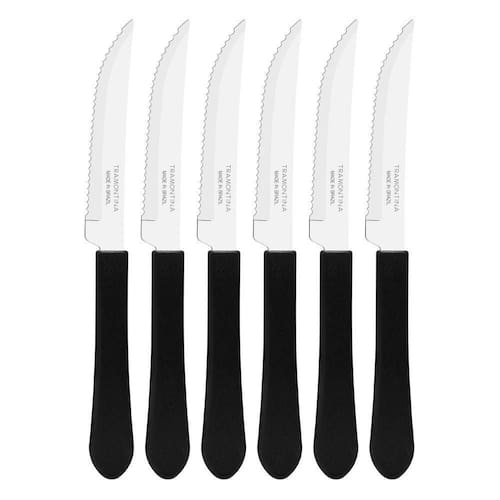 6 - Facas de Mesa Churrasco Tramontina Leme Inox Cabo Preto.