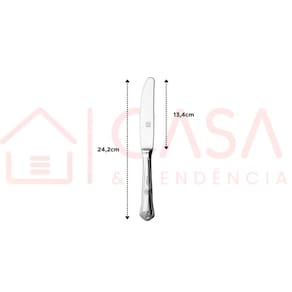 - 6 Facas de Mesa: 24,2 cm lâmina 13,4 cm e espessura 7 mm;