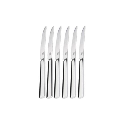 - 6 Facas de Sobremesa Ponta arredondada : 21cm; tamanho lâmina 10,4 cm e espessura 7,7 mm