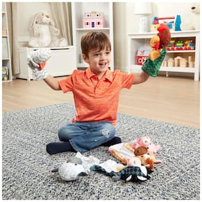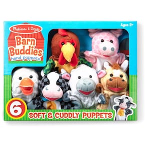 Este conjunto de fantoches de mão Melissa Doug Barn Buddies é perfeito para crianças a partir de dois anos e adultos. O conjunto contém seis fantoches de mão macios, incluindo uma vaca, uma ovelha, um cavalo, um pato, uma galinha e um porco. Os fantoches são feitos com material de pelúcia macio e lavável, tornando os fáceis de limpar. Além disso, eles são dimensionados para caber em crianças e na maioria dos adultos. As crianças podem aprender habilidades motoras, coordenação olho mão, habilidades de comunicação e autoconfiança enquanto brincam com esses fantoches. Este conjunto de fantoches também faz um presente excepcional para crianças de 2 a 6 anos. Adicione o Melissa Doug Deluxe Puppet Theatre para completar a experiência de brincadeira e dar às crianças outra opção envolvente para diversão sem tela. A Melissa Doug tem sido referência em produtos lindamente projetados para estimular a imaginação e a criatividade infantil há mais de 30 anos.