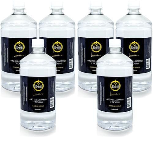 Seis unidades de Fluido para tocheiros e lamparinas Velas Bistrot 1 litro - puro sem aroma.