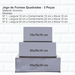 Kit formas retangular 3 peças Kit formas quadrada 3 peças