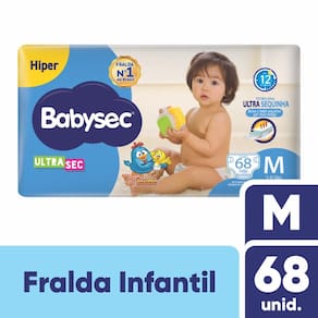 O Kit contém: 6 pacotes de Fraldas Babysec Galinha Pintadinha Ultrasec Hiper Tamanho M com 68 unidades cada.