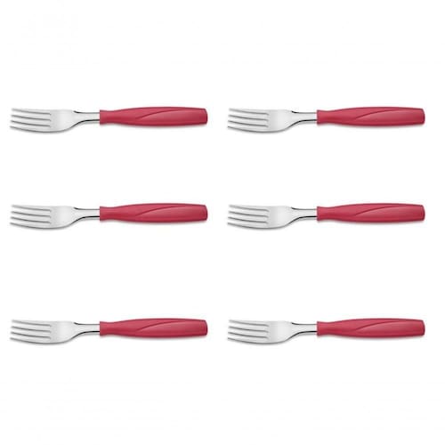 KIT 6 GARFO DE MESA AÇO INOX ITAPARICA VERMELHO BRINOX