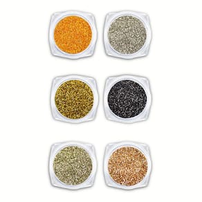 Glitters para aplicação em unhas são produtos de beleza projetados para adicionar brilho e glamour às inúmeras decorações que podemos fazer. Partículas de Glitter que refletem a luz, proporcionando um efeito cintilante e brilhante quando aplicadas sobre esmaltes, misturados em géis, utilizados no encapsulamento, ou diretamente nas unhas. Indispensável para manicures, e também para as que amam unhas com muito brilho!