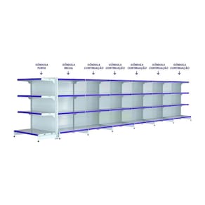 Nosso kit com 6 gôndolas de centro + ponta na cor branca é ideal para armazenamento e exposição de produtos em supermercados, mercearias, farmácias, lojas de utilidades, materiais de construção, agropecuárias, e muito mais, variando de acordo com a capacidade de peso de cada modelo.com 1,37m de altura, esta gôndola proporciona uma exibição eficiente dos produtos, maximizando o espaço vertical da sua loja e permitindo uma organização prática e acessível.as gôndolas possuem uma capacidade de 40kg por bandeja. com pintura eletrostática epóxi, antibacteriana, uniforme e resistente.possui bandejas com inclinação em 3 posições e bandejas reguláveis na coluna a cada 25mm, o que permite adição de bandejas extras. a bandeja é construida em chapa 26 (espessura de 0,50mm). fundo da bandeja quadrado para melhor exposição.pés com regulagem de altura, colunas dupladas e tratamento especial da superfície.a gôndola é prática e fácil de montar, com sistema de encaixe sem utilização de parafusos. você pode instalar suas gôndolas rapidamente, sem complicações, permitindo que você comece a exibir seus produtos em pouco tempo.todas as nossas gôndolas possuem qualidade, resistência e durabilidade garantidas pelo uso de matérias-primas de alto padrão, processos produtivos com a mais atual tecnologia e um cuidado especial em cada etapa.modernas e elegantes, nossas gôndolas são projetadas para destacar seus produtos e criar um ambiente agradável de compras para seus clientes, incentivando a exploração e aumentando as vendas.aproveite ao máximo cada centímetro disponível em sua loja com nossas gôndolas projetadas para maximizar o espaço de exposição, permitindo uma ampla variedade de produtos em um layout eficiente.- capacidade de 40kg por bandeja;- colunas dupladas: com sistema de encaixe, sem utilização de parafusos;- tecnologia exclusiva de apoio sgl;- pés reforçados e com regulagem;- bandejas inclináveis: oferece 3 opções para melhor exposição;- bandejas reguláveis a cada 25mm: possibilidade de adicionar bandejas extras;- reforço na base e bandeja: para maior capacidade de carga e estabilidade;- bandeja é construida em chapa 26;- ponteira da coluna: maior proteção e durabilidade.*porta etiquetas: vendidos separadamente, em variadas opções de cores.> o kit contém- 01x gôndola new premium 1,37m branca ponta- 01x gôndola new premium 1,37m branca centro inicial- 05x gôndola new premium 1,37m branca centro continuação> especificaçõesgôndola pontamodelo: gôndola pontalinha: fit 40altura: 1,37mcor: brancaquantidade de bandeja: 4peso suportado por bandeja: 40kgchapa: 26gôndola centro inicialmodelo: gôndola de centro iniciallinha: fit 40altura: 1,37mcor: brancaquantidade de bandeja: 8 (4 em cada lado)peso suportado por bandeja: 40kgchapa: 26gôndola centro continuaçãomodelo: gôndola de centro continuaçãolinha: fit 40altura: 1,37mcor: brancaquantidade de bandeja: 8 (4 em cada lado)peso suportado por bandeja: 40kgchapa: 26> medidas do produtogôndola pontaaltura: 1,37mlargura: 0,84mpeso: 18kglargura da bandeja: 0,78mprofundidade da bandeja base: 0,40mprofundidade das bandejas superiores: 0,30mgôndola centro inicialaltura: 1,37mlargura: 0,96mpeso: 28kglargura da bandeja: 0,90mprofundidade da bandeja base: 0,40mprofundidade das bandejas superiores: 0,30mgôndola centro continuaçãoaltura: 1,37mlargura: 0,93mpeso: 23kglargura da bandeja: 0,90mprofundidade da bandeja base: 0,40mprofundidade das bandejas superiores: 0,30m> garantia- 6 meses> troca e devoluçãomediante termos da política de trocas e devoluções da empresa.