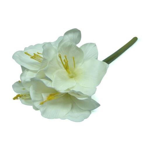 Kit 6 haste de Amarílis Branca Flores ArtificiaisO galho de flor artificial amarílis, ostenta hastes grossas que suportam 4 flores vibrantes na cor branca. Use flores artificiais para iluminar sua decoração. Adicione cor e criatividade à decoração da sua casa ou escritório com as nossas flores Amarílis artificiais. Nossas flores permanentes podem ser adicionadas ao seu vaso favorito com outras flores ou ainda serem usadas sozinhas. Para criar um lindo arranjo, basta colocar um conjunto de hastes em um belo vaso alto.Características do produto- Altura: 65 cm - Largura: 23 cm- Cor: Branco- Composição: Tecido, plástico e arame- Detalhes: cada galho apresenta 4 flores. As flores têm aproximadamente, 13 cm de largura e 10 cm de altura.- Quantidade:06- SKU: DE9186Informações importantes- Produto importado- As cores podem apresentar ligeira variação de tonalidade- As imagens dos arranjos são apenas ilustrativas- Possui um caule e folhagem flexíveis podendo assumir a posição que desejar- Você pode diminuir o tamanho da haste conforme sua necessidade- As plantas permanentes são embaladas de forma compacta e os caules dobrados. Isso não afeta a qualidade e beleza do produto, basta desdobra-los.Vantagens das flores artificiaisAs flores artificiais são presentes clássicos e duram muito tempo. Não precisam ser podadas, regadas ou expostas regularmente à luz solar. Elas são bem fáceis de cuidar, precisam somente de higienização periódica. Marca: Decora Flores Artificiais