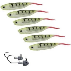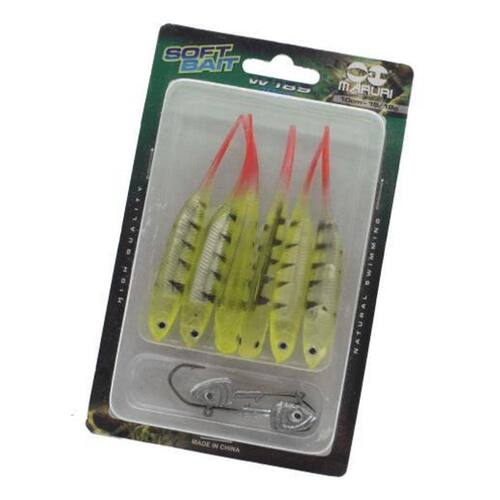 Kit com 6 iscas soft de silicone + 2 anzois zig head.
