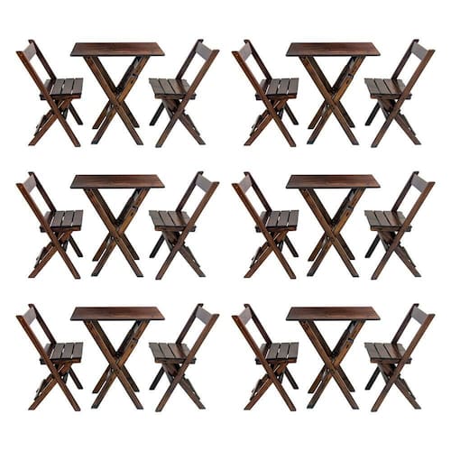AS IMAGENS SÃO MERAMENTE ILUSTRATIVAS E PODEM SOFRER VARIAÇÕES DE COR E PEQUENOS DETALHES DE ACORDO COM O SEU MONITOR, ILUMINAÇÃO DO AMBIENTE E ATÉ MESMO A SUA PERCEPÇÃO VISUAL.Kit 6 Jogos De Mesa Aparador Bar DobrÃvel Com 2 Cadeiras Em Madeira MaciÃa - Imbuia