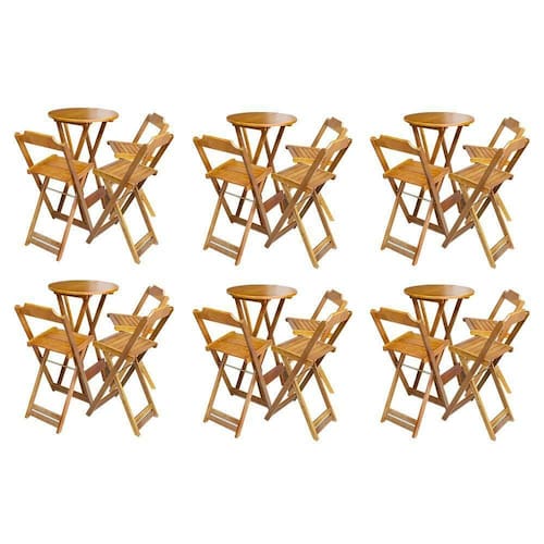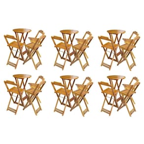 Kit 6 Jogos De Mesa Bistrô De Madeira Dobrável Com 3 Banquetas - Mel