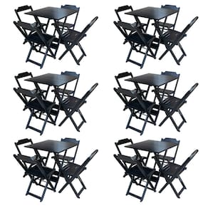 Kit 6 Jogos de Mesa com 4 Cadeiras de Madeira Dobravel 60x60 Ideal para Bar e Restaurante - Preto - Preto