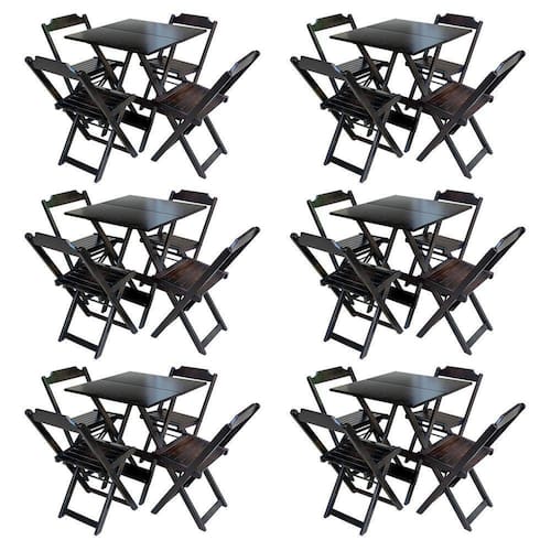 Kit 6 Jogos De Mesa Com 4 Cadeiras De Madeira Dobravel 70X70 - Tabaco - Marrom