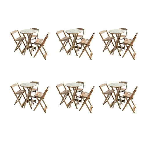 Kit 6 Jogos De Mesas Bistrô De Madeira Dobrável Com 3 Banquetas - Crua