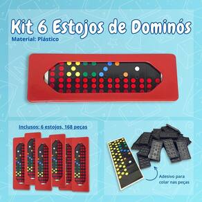 - um kit de 6 jogos de dominó com estojo em plástico.