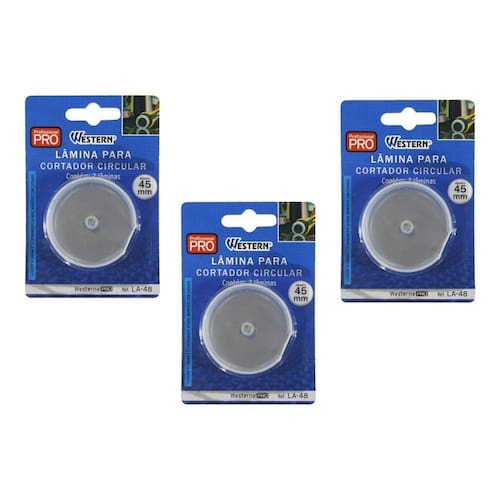 Lâmina intercambiável em aço carbono para cortador circular. As Lâminas de reposição possuem bordas afiadas para utilização em materiais diversos. Proporcionam mais firmeza para cortar e seu formato circular alivia o esforço do corte. O kit vem com 3 blisters com 2 lâminas cada totalizando 6 lâminas.