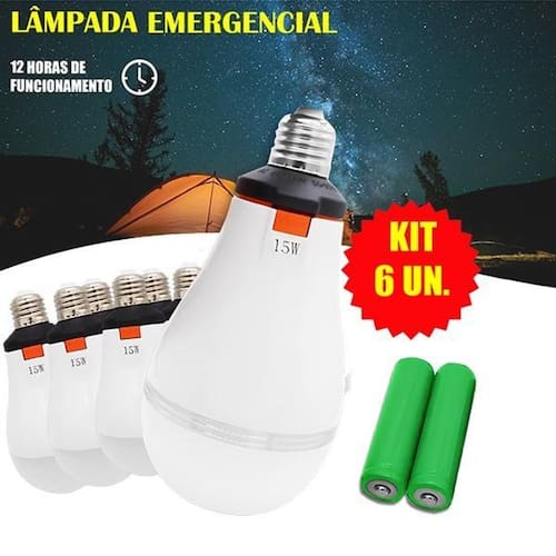 KIT 6 Lâmpadas LED de Emergência Bateria Recarregável 12h Cor: Branco A Lâmpada LED Recarregável é uma solução moderna, econômica e ecológica para iluminar sua casa ou escritório. Com uma bateria interna recarregável, ela oferece até 12 horas de iluminação contínua, garantindo que você nunca fique no escuro, mesmo durante quedas de energia. Essa lâmpada é extremamente eficiente, consumindo até 80% menos energia em comparação com as lâmpadas incandescentes tradicionais. Além disso, sua vida útil é 10 vezes maior, proporcionando durabilidade e redução de custos com substituições frequentes. A Lâmpada LED Recarregável também se destaca por sua operação dentro de uma ampla faixa de tensão 85-265V , sendo compatível com diversas redes elétricas. Ela não emite radiação de calor nem ultravioleta, e é completamente livre de Cinza, mercúrio ou outras substâncias nocivas, sendo uma escolha segura para sua saúde e o meio ambiente. Especificações: - Duração da bateria: até 12 horas; - Economia de energia: até 80% em relação às lâmpadas incandescentes; - Vida útil: 10 vezes mais durável que lâmpadas incandescentes; - Tensão de operação: 85-265V; - Sem radiação de calor ou ultravioleta; - Livre de substâncias nocivas como Cinza e mercúrio. Itens Inclusos: - 6x Lâmpadas LED Recarregáveis; - 12x Baterias internas 2x para cada Lâmpada . Essa lâmpada é ideal para quem busca eficiência, sustentabilidade e segurança na iluminação do dia a dia, combinando economia com responsabilidade ambiental. Marca: Não Informado