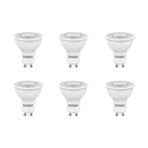 Kit 6 Lâmpadas Led Dicroica Mr16 TDL 7W Taschibra Bivolt 2700K Luz Quente
