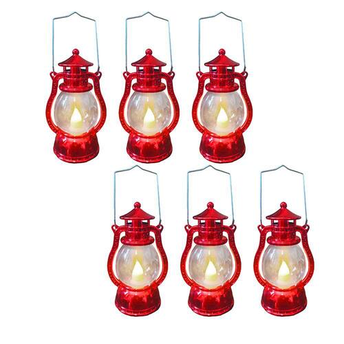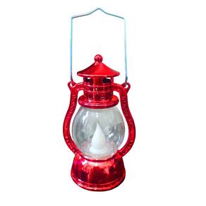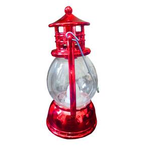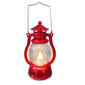 Luminária Decorativa PEQUENA na cor Vermelho, em forma da lamparina com 12 cm de altura. Interior com enfeite em forma de 1 vela. Botão liga e desliga. Ao ligar, é como se a vela estivesse acesa.
