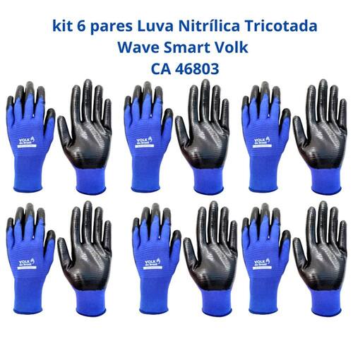 Kit 6 pares Luva Nitrílica Tricotada Wave Smart CA 46803 Proteção e Conforto em Diversas Atividades **Por favor, informe suas variações desejadas pelo campo de mensagem em até 48 horas após a compra. Caso não recebamos sua solicitação dentro desse prazo, o pedido será enviado conforme a seleção feita no momento da compra.**
