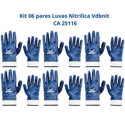 Kit 06 pares Luvas Nitrílica VDBNIT Punho de Lona CA 25116 Proteção Contra Produtos Químicos e Mecânicos A luva nitrílica VDBNIT punho de lona da Volk foi desenvolvida para garantir proteção e durabilidade em atividades que exigem resistência a produtos químicos e mecânicos. Com revestimento em borracha nitrílica e punho de lona, ela oferece conforto, segurança e excelente desempenho.