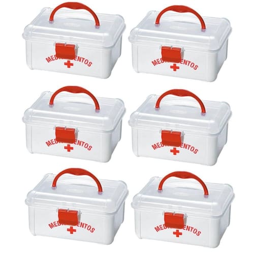 Kit 6 Maletas para Medicamentos 19x16x10CM Primeiros Socorros 043/M NITRON FRASQUEIRA PEQUENA Para quem precisa de caixa maleta organizadora em plástico, com fecho, divisores leve e fácil de transportar. A caixa de medicamentos é um item indispensável para manter os produtos de forma organizada, pois sua alça retrátil, permite levar para onde preferir. Peso: 120 g Largura: 16 cm Comprimento: 10 cm Altura: 19 cm Capacidade: 1,4 L DIFERENCIAIS: BPA Free Livre de BPA - O BPA é uma substância química que faz mal à saúde Design alegre que se adequa em todos os momentos Material incrivelmente resistente Marca: Não Informado