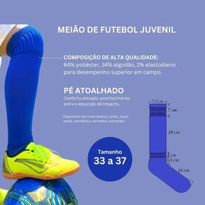 Apresentamos o Kit 6 Unidades de Meião de Futebol Juvenil Atoalhado 33/37!