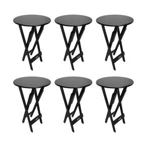 Kit 6 Mesas Bistrôs Dobráveis De Madeira Redonda Preta - Tarimatã