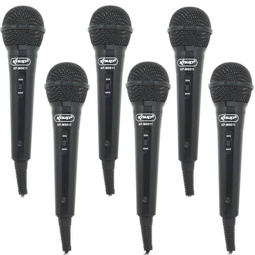Kit 6 Microfones Dinâmico c/ Fio P10 P2 Cabo 2,8 Metros Karaokê e Caixa de Som Knup KP-M0011 Preto