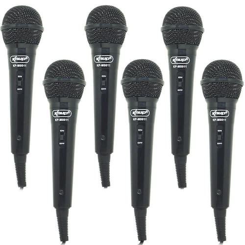 Itens inclusos: 6 Microfone, 6 Adaptador P10 (6,5mm) para P2 (3,5mm)