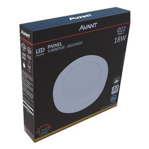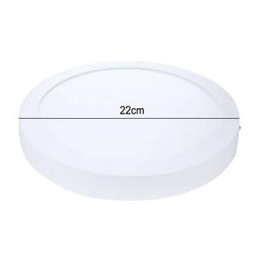 Informações técnicas: Led integrado Potência: 18W Temperatura: 3000K Emissão de luz amarela Medida: 22cm Forma: Redondo Lúmens: 1680 Irc: =70 Ângulo de abertura: 120 Material: Corpo em alumínio, difusor em vidro, corpo do driver em plástico Eficiência luminosa: 70lm/W Painel de sobrepor Vida útil: 25 mil horas L70 Pode ser ligado diretamente na rede elétrica em 127V ou 220V Não permite dimerização