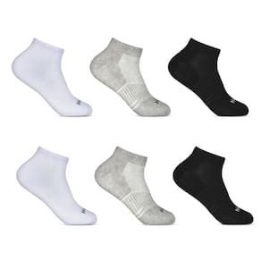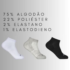 Possui 6 pares (2 pares de meias preta//2 pares de meias branca//2 pares de meias cinza)