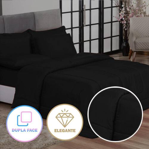 Edredom Dupla Face Casal Queen 2,40m x 2,20m Porta Travesseiro 70cm x 50cm Fronhas 70cm x 50cm Lençol de Baixo com Elástico para colchão de 1,98m x 1,58m x 30cm altura