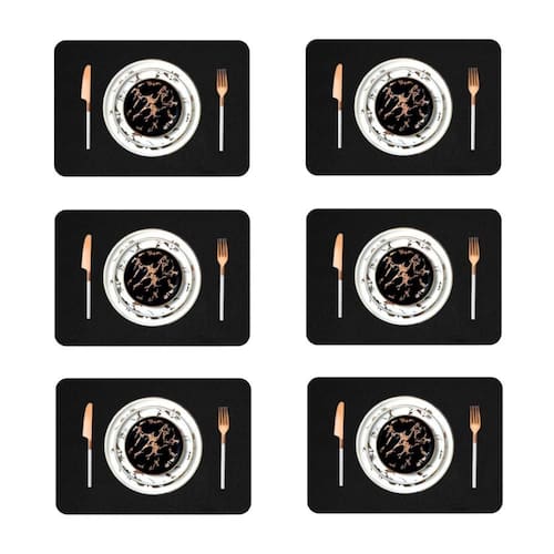 Kit 6 peças jogo americano mesa posta sousplat retangular Cor: preto Tamano: 43x30 Jogo americano couro retangular + porta copos