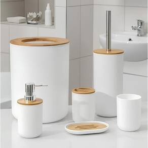 Kit 6 Peças Para Banheiro Lavabo Moderno Plástico ABS Bambu