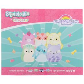 Adicione um toque de cor à sua coleção de pelúcias com o 6pack Cute Colorful Squad Este pacote contém seis Squishmallows em um tamanho exclusivo de 5 cm, cada um com uma personalidade única Annalise, o Alicórnio Rosa Quente, Duna, o Polvo Tiedye Dumbo Amarelo, Fuyuki, o Esquilo Verde, Danika, o Golfinho Tiedye Crinkle Azul, Lemora, a Raposa Lavanda e Rayn, o Açúcar Laranja Planador. Feitos com recheio super macio, esses Squishmallows são perfeitos para colecionar e exibir. Construa o mundo de Squishville com Squishmallows de 5 cm, acessórios, Play Displays e conjuntos de pelúcia. Adicione este conjunto e outros emocionantes esquadrões de Squishville à sua coleção.