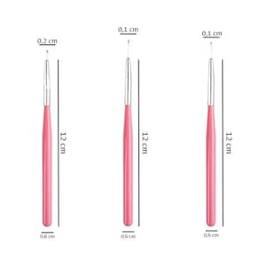 Pincéis de alta qualidade, feitos com cerdas resistentes. Desenvolvidos para decoração de unhas e alongamentos como de gel, acrílico e porcelana. Permitem a criação de lindos desenhos, modelos, formas e pinturas artísticas, em unhas naturais ou artificiais. Indispensáveis para Manicures, Pedicures e Designers de Unhas. Leves e fáceis de manusear.