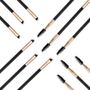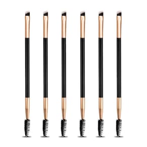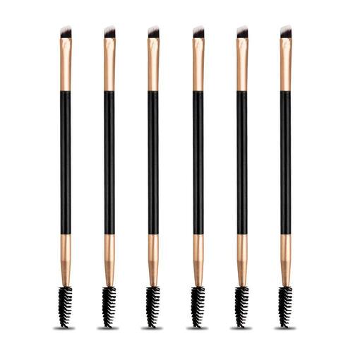 Kit 6 Pincéis Duplo Ponta Chanfrada e Escovinha Sobrancelha